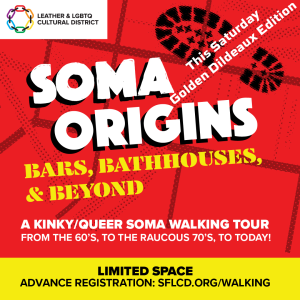 Join tour guide Wylde Honey as he leads you on our SOMA walking tour! Tread in the steps our LGBTQ ancestors took up and down the ‘hood for freedom! Best ...