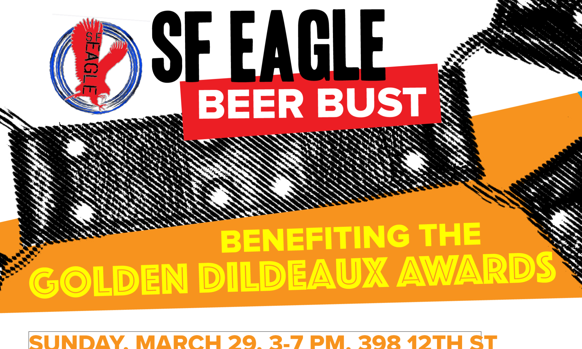 Join us Sunday, March 29, for the LEATHER & LGBTQ Cultural District’s Golden Dildeaux Awards beer bust! From 3 to 7 pm, at the San Francisco Eagle, 398 12th Street.