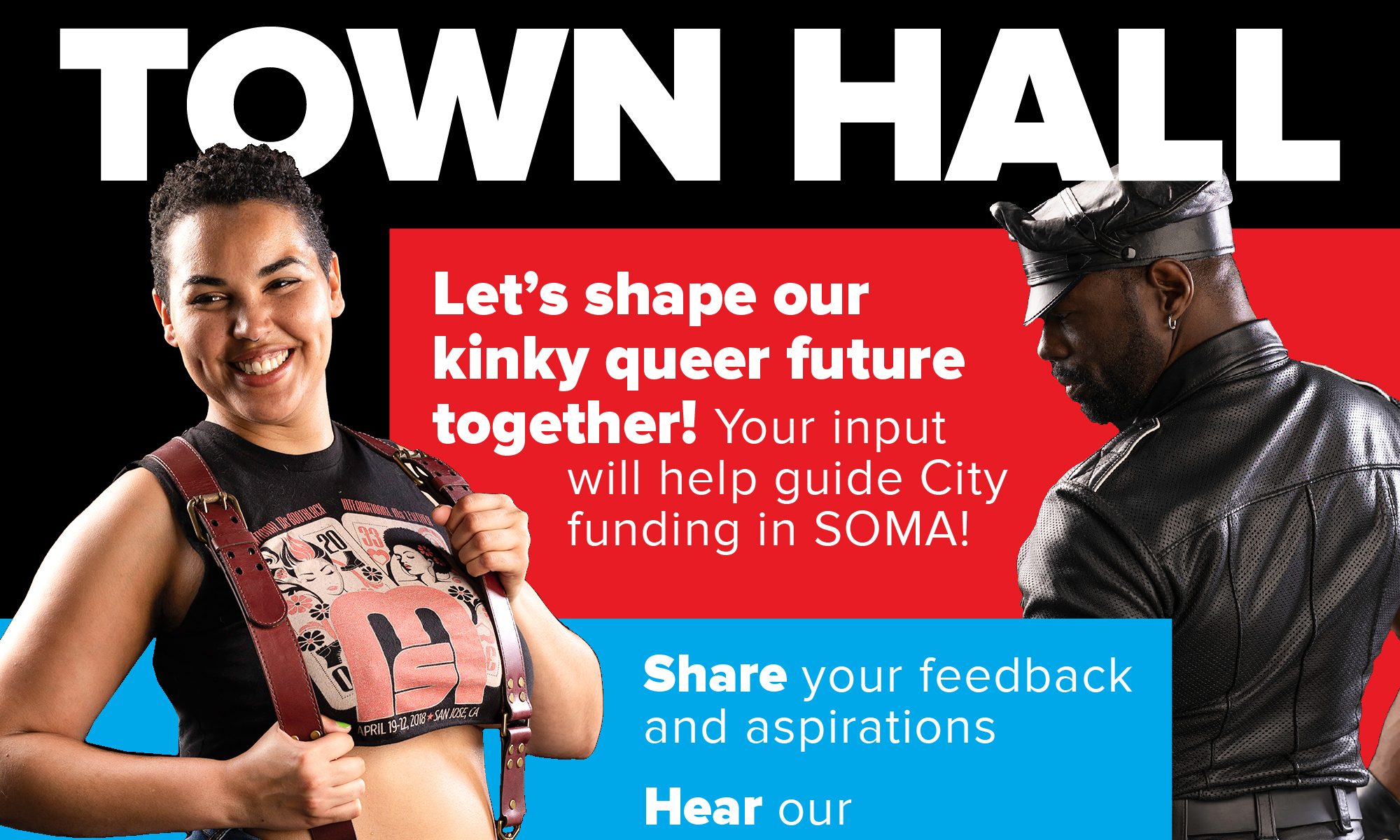 Executive Director Bob Goldfarb and District Manager Cal Callahan reviewed the accomplishments since our last Town Hall in June 2025. These included the installation of seven commemorative sidewalk plaques, LeatherWalk, the return of the Ringold Anniversary Block Party, the Kinky Holiday Market, the establishment of a SOMA entertainment zone, the introduction of the Kink & Draw program, and the expansion of our popular Gear Swap n Shop.
