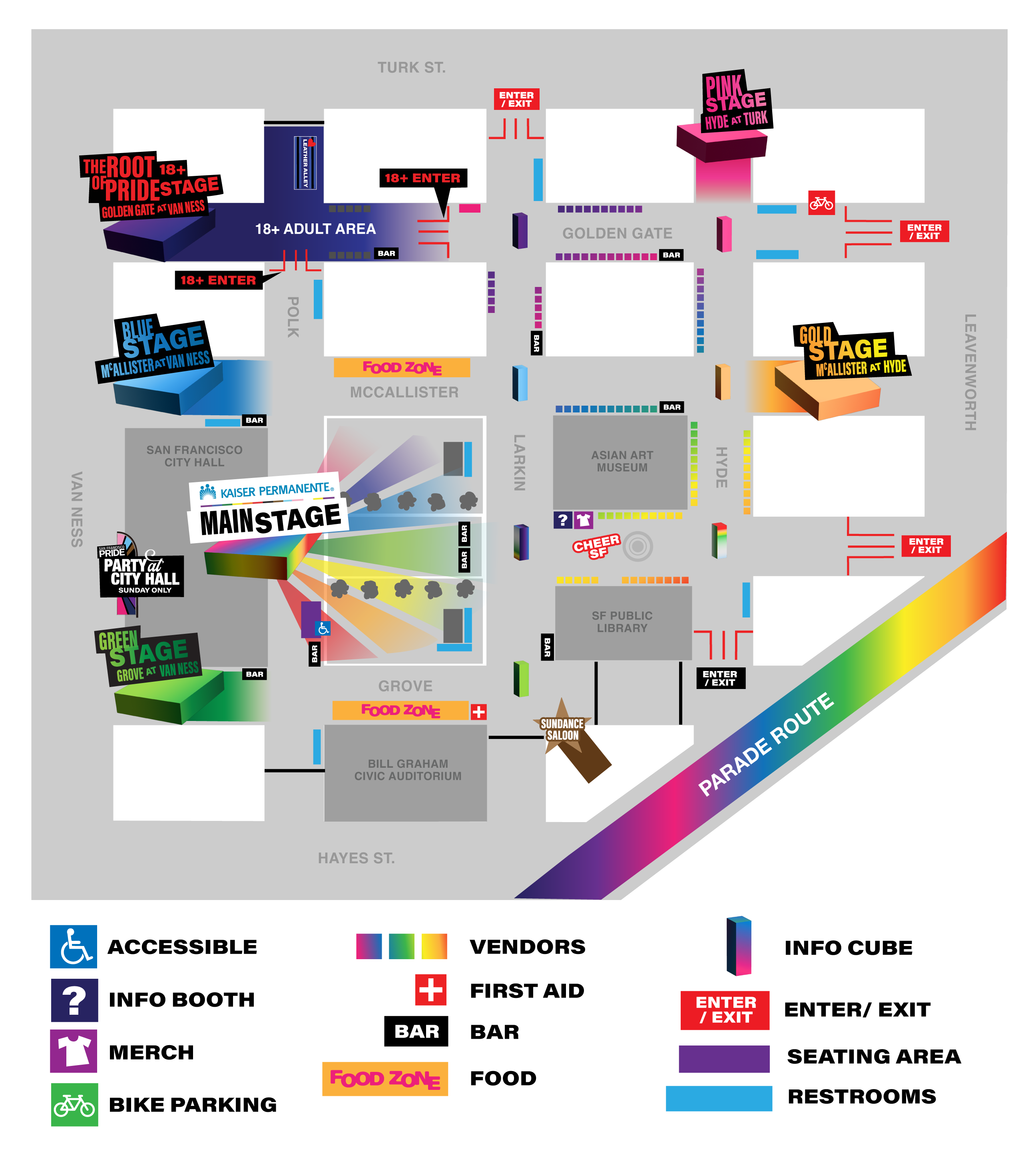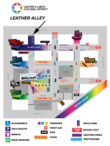 On Sunday, visit our Leather Alley! which is an entire block on Polk (enter from Golden Gate Ave.) inside the adults (18+) only area called ‘the Root of Pride’.