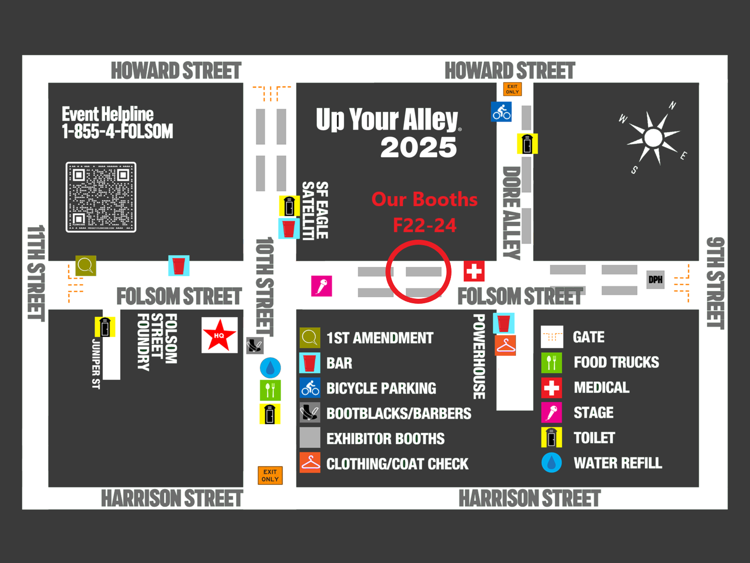 Join the LEATHER & LGBTQ Cultural District this Sunday at the Up Your Alley Fair! We have great stuff at our Gear Swap, early info about LeatherWalk 2025, and custom bandanas and pins.